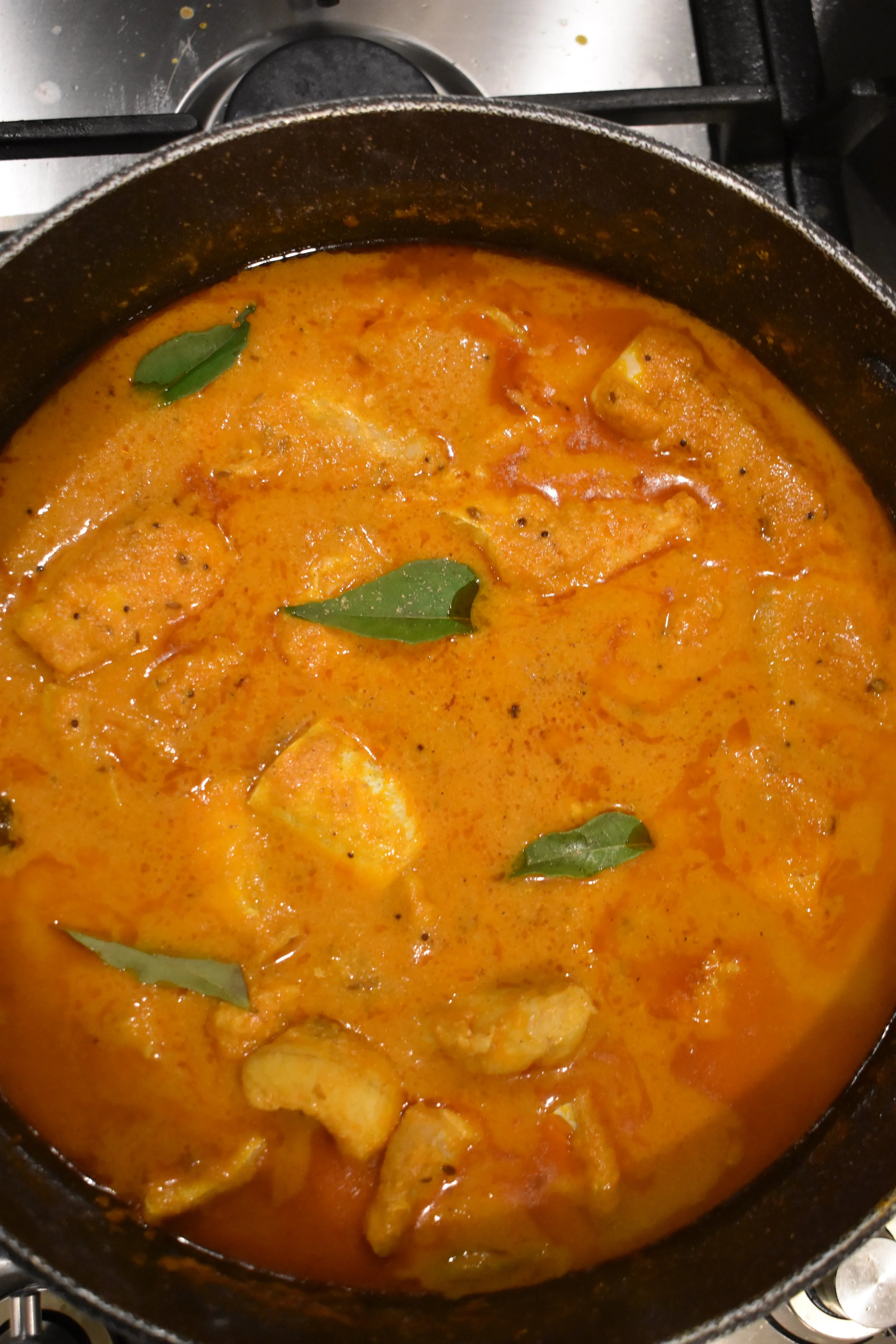 Gently add fish pieces to the curry. Cover and cook on low heat for another 8-10 minutes or until the fish is cooked through.